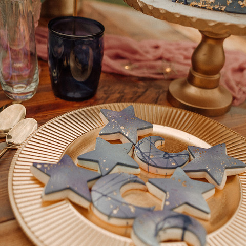 Can we just talk about the cake for a minute?! It was nothing short of amazing and gorgeous all at the same time. Does it not scream "Starry Night"? The cake was created by Gretchen Knapp, the pastier at Mission Bistro in Stevensville. She not only is a talent in the baking world, but is so sweet and so fun to work with. She was also so excited for the Starry Montana Elopement and could not wait to put together the cake once we told her the vision. She also added the star ad moon shaped cookies to tie together our theme.